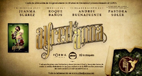 | “Alfred & Anna” es un cortometraje de animación dirigido por Juanma Suárez, con la colaboración de Andreu Buenafuente, con música original de Roque Baños y guión de Jorge Laplace, producido por Enrique Fernández Guzmán para Forma Animada/ Pizzel Studios y Olmo Figueredo González-Quevedo para La Claqueta PC con la colaboración de El Terrat. “Alfred & Anna” cuenta además con la participación de la Universidad de Córdoba, a través de Citec, y de la iniciativa Actitud Activa. Desde que las familias de Humminbird tuvieron que emigrar, dejando al pueblo sin niños, el profesor Alfred ha visto truncada su gran pasión, dar clases de música. Además, Alfred se ha ido aislando y distanciando cada día más de su esposa Anna y de la vida que ambos habían deseado. La llegada de un nuevo alumno le devolverá la ilusión por las clases, pero, ¿podrá recuperar Alfred la ilusión por el amor? | ||