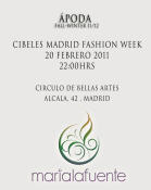 EVENTO, dentro de Cibeles Madrid Fhasion Week se celebra este domingo el desfile de María La Fuente diseñadora que vuelve pisando fuerte con una colección inspirada en las transformaciones, la metamorfosis y el proceso de cambio de la naturaleza, que exhibirá en el Círculo de Bellas Artes, dentro de la plataforma Cibeles Off. La diseñadora leonesa ha presentado su nueva colección, 'Apoda', basada en tejidos ecológicos. Ha sido una grata sorpresa encontrar una colección que conjuga creatividad y trabajo de manera responsable con el medio ambiente. Como en sus desfiles anteriores y fiel a su estilo, la disenadora baso su coleccion en la complejidad volumetrica. Todo esto en un entorno tan agrabable como es el Circulo de Bellas Artes. Valoración: 8. Madrid. Febrero11. (CW). | 02/2011 |