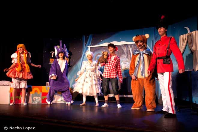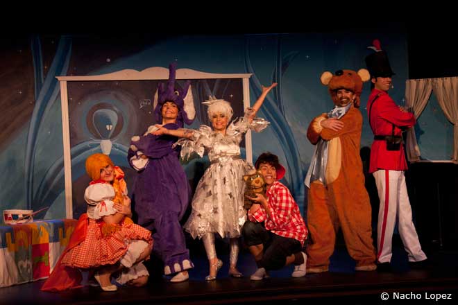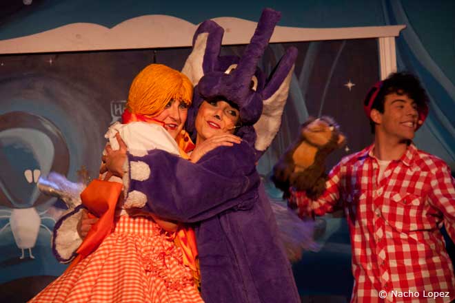 A partir de ese momento, un montón de personajes irán haciendo su entrada en escena, unos con cara de ogro como Don Abacu Cucú y del que después descubriremos que no es tan fiero el león como lo pintan. Un cocinero mostrará sus artes culinarias y un bombero, algo tartamudo, salvará a la chica que después se convertirá en su mujer. La magia del cuento irá despejando el camino y Lía terminará por demostrar a Luis que no hay que juzgar a las personas sin conocerlas y que con buen corazón y abrazos todo es posible para llegar a tener amigos. Y nuestra historia va aderezada con canciones y coreografías que harán la delicia del público infantil, haciendo inclusive que participen en algunos de los momentos de la obra. Al final, como en todos los cuentos, Luis conseguirá su deseo: Tener muchos amigos y todos entenderemos que la moraleja de esta humilde historia se hará realidad y el mensaje que esperamos que todos se lleven y quede también entre nosotros es el de respeto, cariño, comprensión y sobretodo abrazos, muchos abrazos, que el mundo está falto de ellos.