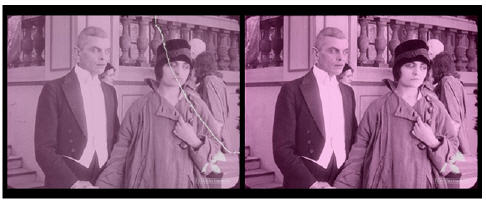 La primera etapa de la reconstrucción consistió en la restauración de la cinta. Antes de que pudiera ser escaneada, se realizó una reconstrucción manual. Después se elimino por medios mecánicos toda la suciedad. A continuación, la cinta se divide en segmentos y se procede al escaneado con un escáner especialmente diseñado para las cintas de película antigua.