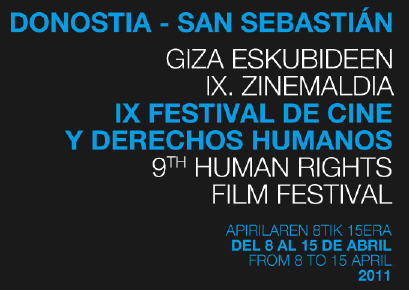 El Festival de Cine y Derechos Humanos de San Sebastián es un compromiso con la función educadora de una ciudad conocida en todo el mundo por su vinculación al cine y por su defensa y promoción de los derechos humanos. Está organizado por el Ayuntamiento de San Sebastián a través de la Casa de la Paz y los Derechos Humanos y Donostia Kultura, y se celebrará del 8 al 15 de abril de 2011. Este festival pretende que todos y cada uno de los proyectos y actuaciones que se lleven a cabo se guíen por un objetivo común: el de favorecer y promover el ejercicio de los derechos humanos y la Cultura de Paz. El plazo para la inscripción en el Jurado Joven del festival, ya está abierto. Hasta el próximo 18 de marzo, los/as jóvenes de entre 18 y 30 años que tengan interés en formar parte de dicho Jurado pueden apuntarse a través de la propia web del festival. Más información.
