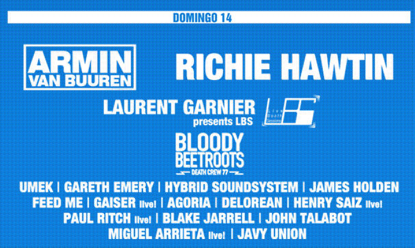 + Viernes 12 de agosto Mechanismo / Fuzz / The Casters / Fuel Fandango / The Noises / San León / Últimos Bañistas / Sexy Sadie / Niños Mutantes / Nacho Vegas / Second / Cyan / Midnight Travellers / Bigott / Delorean / Guadalupe Plata / Holywater / Tachenko / The Last Dandies / My Friendly Ghost / Stay / Mine! / Última Experiencia / La Orquesta Poligonera / Iv?n Ferreiro / Hola Hola Hermanita / Dorian / Pin & Pon DJés / In Between Diyeis / Eme DJ / Los Campesinos!