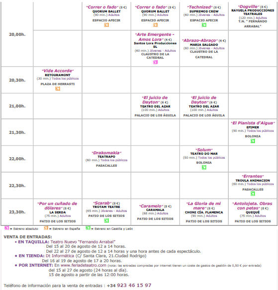 La Feria de Teatro que organiza la Junta de Castilla y León es un proyecto cultural sólido y acreditado que ha convertido a nuestra Comunidad en un referente muy relevante para el sector de las artes escénicas, ya que se ocupa de un mercado amplísimo en el centro-occidental de la península no abarcado por otras ferias y apuesta por la consolidación de las relaciones con Portugal y con la Comunidad de Extremadura, al tiempo que abre nuevas vías de intercambio con otras Comunidades Autónomas, para que la difusión de las propuestas escénicas fluya con más fuerza, y la cultura encuentre nuevos caminos de tránsito. La Feria convierte a Ciudad Rodrigo en una “Ciudad Teatro”, única y espacial por unos días, capaz de facilitar la desaparición de las fronteras, provocando un verdadero intercambio económico y de difusión escénica entre España y Portugal. La decimocuarta edición de la Feria de Teatro vuelve a ser la cita imprescindible para la cultura y el teatro en nuestra Comunidad; del 23 al 27 de agosto, Ciudad Rodrigo será de nuevo el exponente de los esfuerzos de la Junta de Castilla y León por apoyar la promoción, la difusión, la formación y el intercambio, en torno al apasionante mundo de las Artes Escénicas. Programación: Día 23 TEATRO CORSARIO “El gran viaje. Homenaje a Fernando Urdiales”