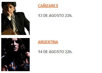 + Sábado 13 de agosto Supertubos / El Guincho / Mishima / Buffet Libre / Dinero / The Zombie Kids / Eladio y los Seres Queridos / Dos Bandas y Un Destino / CatPeople / Disco las Palmeras! / El Columpio Asesino / PLV Havoc / Láger / La Habitación Roja / Cohete / Smile / El Hombre del Traje / Miss Cafeína / Supersubmarina / Horthy / Marcus Doo & The Secret Family / Xoel López / Grises / Hola A Todo El Mundo / Little Indian Rabbits / Call Me Idiot / Mujeres / The Leadings / Elgatodeescayola / Lapido / Rinocerose / Campingas / 45 Grados / Shout Out Louds
