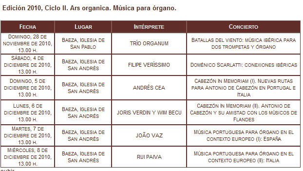 XIV Festival de Música Antigua de Úbeda y Baeza 2010 Portugal no centro do mundo Cura: "Con eso, ¿músicos son todos cuantos