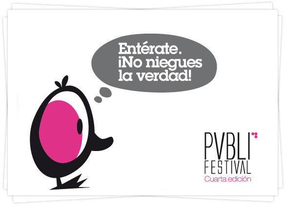 En el quinto año de existencia de Publifestival y bajo el claim, Entérate, no niegues la verdad, Publifestival, el Festival Internacional de la Publicidad Social, vuelve con más emociones que nunca. Desde cualquier parte del mundo, PUBLIFESTIVAL da la bienvenida a creativos, agencias, instituciones, anunciantes, medios de comunicación… profesionales del mundo de la publicidad con un mismo pensamiento y bajo un mism o lema: no negar la verdad, luchar entre todos por un mundo más justo. Un festival sin decepciones. A diferencia de ediciones anteriores donde cada pieza enviada suponía un coste para los participantes, este año Publifestival ha pensado en sus concursantes para que puedan participar gratuitamente y serán sólo los ganadores los que abonarán 250 euros por cada premio, disfrutando de la estatuilla y toda la promoción de medios.