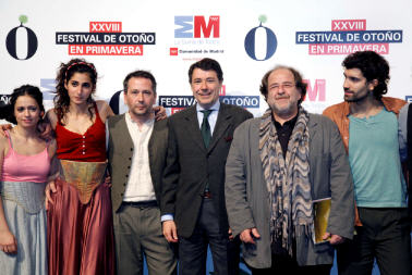 Foto: Comunidad de Madrid. El vicepresidente y consejero de Cultura y Deporte de la Comunidad de Madrid, Ignacio González, junto al director artístico del Festival de Otoño en primavera, Ariel Goldenberg, y el director teatral Juan Carlos Corazza, los integrantes de su compañía Teatro del Estudio y otros actores que estarán presentes en el XXVIII Festival de Otoño en primavera. Un Shakespeare contemporáneo para la inauguración La inauguración del XXVIII Festival de Otoño en primavera de la Comunidad de Madrid correrá a cargo de Propeller, una de las formaciones británicas más aclamadas a nivel internacional. La compañía inglesa, integrada únicamente por varones, a imagen y semejanza de lo que sucedía en la época isabelina, representará en los Teatros del Canal el estreno español de The Comedy of Errors, una de las comedias más absurdas e inteligentes de William Shakespeare, tratada bajo un prisma estético contemporáneo. El argentino Claudio Tolcachir regresará a los escenarios madrileños con la obra El viento en un violín. Peter Brook y su compañía Théâtre des Bouffes du Nord presentarán Una flauta mágica, a partir de la obra de Wolfgang Amadeus Mozart. El italiano Romeo Castellucci mostrará la sobrecogedora On the Concept of the Face, regarding the Son of God, mientras la Compagnie 111 de Aurélien Bory sorprenderá con su teatro físico en Sans Objet.