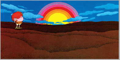 Algo más de suerte tuvo el otro largometraje que pudo dirigir, El desván de la fantasía (1977). José Ramón Sánchez había realizado un maravilloso trabajo de ilustración, didáctico, ameno y divertido, para una serie de libros que se editaron bajo el título de Los libros del aprendiz de brujo. Con textos de José Luis García Sánchez, los doce libros que la formaban se dividían a su vez en grupos de tres, dedicados, cada trío, al circo, al teatro, a los juegos y al cine. José Ramón vio enseguida que este trabajo podía servir de base para un largometraje de dibujos animados y, con la ayuda de su amigo Cruz Delgado, quien firma la realización y la producción, se pusieron manos a la obra y consiguieron, pese al escaso presupuesto, llevarla a cabo. Aunque no se llegaría a estrenar en cines, a comienzos de los ochenta los niños la pudieron disfrutar al emitirse, fraccionada en diez episodios, dentro del programa Dabadabada. Y algunos de los dibujos originales del mismo forman parte del trabajo expuesto.