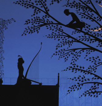La filmografía de Ocelot, como se ve, es un mosaico en el que cada pieza, cada obra, cada trabajo ha contado con la técnica que este autor ha visualizado para ellas. Los cuentos se convierten así en frescos artísticos que destilan en sus formas los colores, las texturas, los materiales que cada uno de estos trabajos necesitaba. Desde el teatrillo popular de las sombras en el que se mueven príncipes, princesas, dragones y demás personajes de los cuentos tradicionales, al dibujo animado con esencias del imaginario africano, plagado de esa atmósfera basada en colores vivos y tonos ocres y rojizos que son las dos partes de Kirikou, para terminar con el mestizaje de oriente y occidente en Azur y Asmar, en el que el 3D se convierte en algo muy distinto a lo que estamos acostumbrados a ver en esta técnica. Ocelot busca un 3D casi plano en el que sumergir la exhuberancia del mundo árabe repleto de arabescos (valga la redundancia) y sabores repletos de especias.