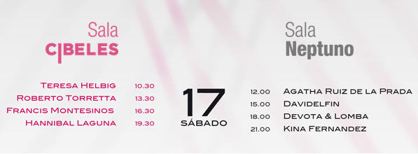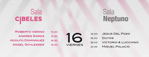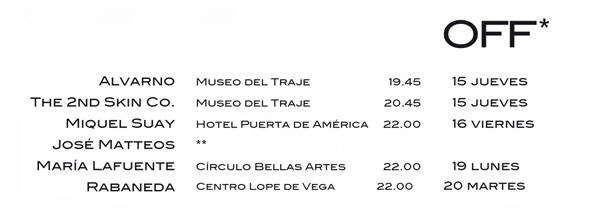 Este año inaugura la pasarela Roberto Verino, además se contará con la ya habitual presencia de Jesús del Pozo, Victorio&Lucchino, Angel Schlesser, Juanjo Oliva, Miguel Palacio, Andrés Sardá, Duyos, Adolfo Domínguez, Davidelfin, Francis Montesinos, Devota & Lomba, Hannibal Laguna, Agatha Ruiz de la Prada, Roberto Torretta, Amaya Arzuaga, etc.