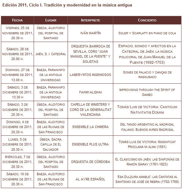 XV Festival de Música Antigua de Úbeda y Baeza 2011 |