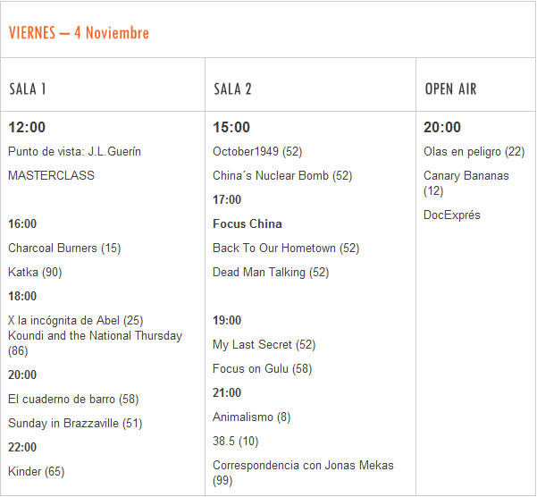1.- Festival Internacional de Cine Documental de Guía de Isora. Se divide en una sección oficial y una serie de secciones informativas. La sección oficial, en la que participan las películas a concurso, se divide en tres premios principales: -Internacional, que se divide en largometraje, cortometraje