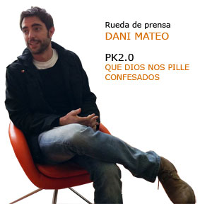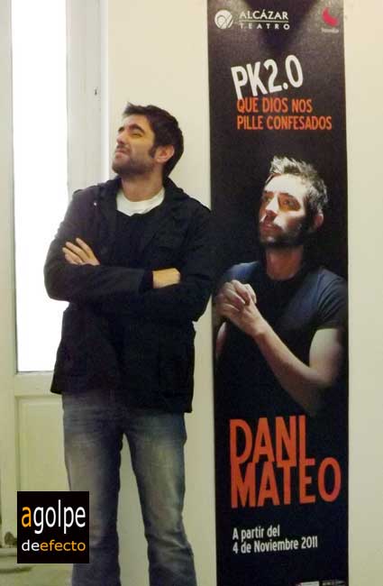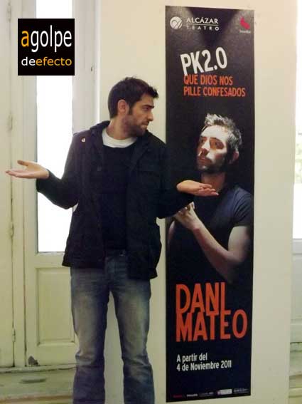 Acudo a la rueda de prensa de presentación del nuevo espectáculo de Dani Mateo, PK2.0 Que Dios nos pille confesados celebrada hoy 3 de noviembre de 2011. Se representará en un espacio privilegiado, el Teatro Alcázar de Madrid en un horario poco común y que muchos de nosotros añorábamos, viernes 23:30 y sábados 0:00 horas. Afortunadamente poco a poco vuelven las funciones de teatro para los más noctámbulos y las sesiones de noche en algunos cines. Como siempre, aunque os cuente la rueda de prensa en versión resumida, tenéis a vuestra disposición el audio completo, merece la pena que lo escuchéis.