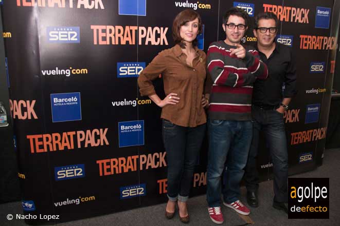 En fin, contaros que para nosotros es entre importante, emocionante y muy significativo venir a Madrid, cuando se produzca esto la semana que viene. Madrid personalmente solo me ha reportado satisfacciones en mi carrera en todo el estado Español. Yo empecé en Cataluña, también en Baleares y Valencia y hubo un momento en que dije, “vamos a saltar a toda España”, entonces se dispararon un montón de leyendas, me decían en Cataluña "no nos van a entender" como si fuéramos de otra galaxia, esos prejuicios, para mi antiguos, de la rivalidad entre ciudades y comunidades, nada mas lejos de la realidad, llegar a Madrid vía televisión y también vía teatro, me ha dado un mundo de satisfacciones, hemos descubierto un publico muy generoso, muy simpático, muy caliente. Recuerdo la anterior gira de Terrat Pack que estuvimos en el Teatro Circo Price, yo me emocione un poquito y yo soy de difícil emoción, porque estoy como curtido, ya para no emocionarme con nada, ni lo bueno ni lo malo, y que no se note, pero recuerdo ese día que pensé "esto es especial", y quería aprovechar para decirlo en nuestra nueva llegada a Madrid; que de todas formas se produce con una madrileña que nos va a amadrinar por decirlo de alguna manera, con un Berto que esta un poquito más desvirgado geográficamente ya que lleva toda la vida dando tumbos por ahí, y ha actuado en toda España y para Corbacho pues también por que al final Corbacho no se sabe muy bien de donde es, el dice que de Hospitalet, pero podría ser perfectamente de Cáceres. Esto nos da, este puntito, esta unión y este atipismo, a la compañía que hemos creado.