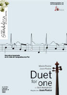 FOR ONE. EL PROPOSITO DE VIVIR de Tom Kempinski Una obra inspirada en la vida de Jacqueline du Pré En la celebración del Décimo Aniversario del Teatro Guindalera, se presenta: Duet for One, un mano a mano escénico entre Juan y María Pastor, padre e hija, impulsores del proyecto a lo largo de estos años. La superación personal a través de la creación artística y la búsqueda de nuevos propósitos vitales, resultan temas centrales en esta pieza. ¿Qué pasaría si repentinamente nos encontráramos en un mundo carente de toda actividad artística?. |